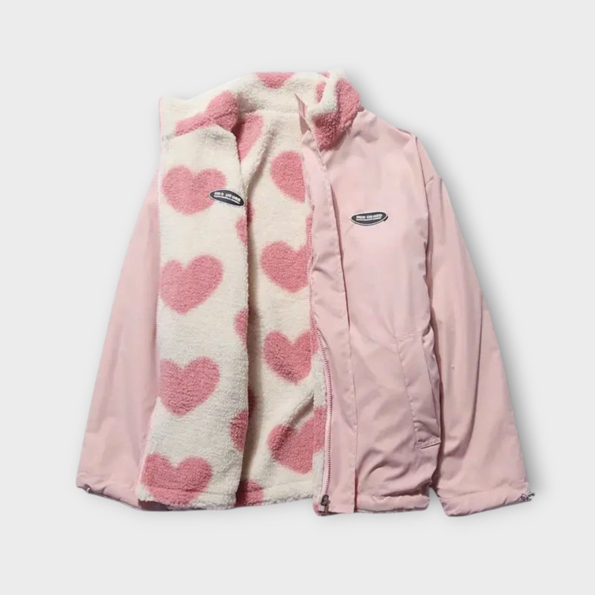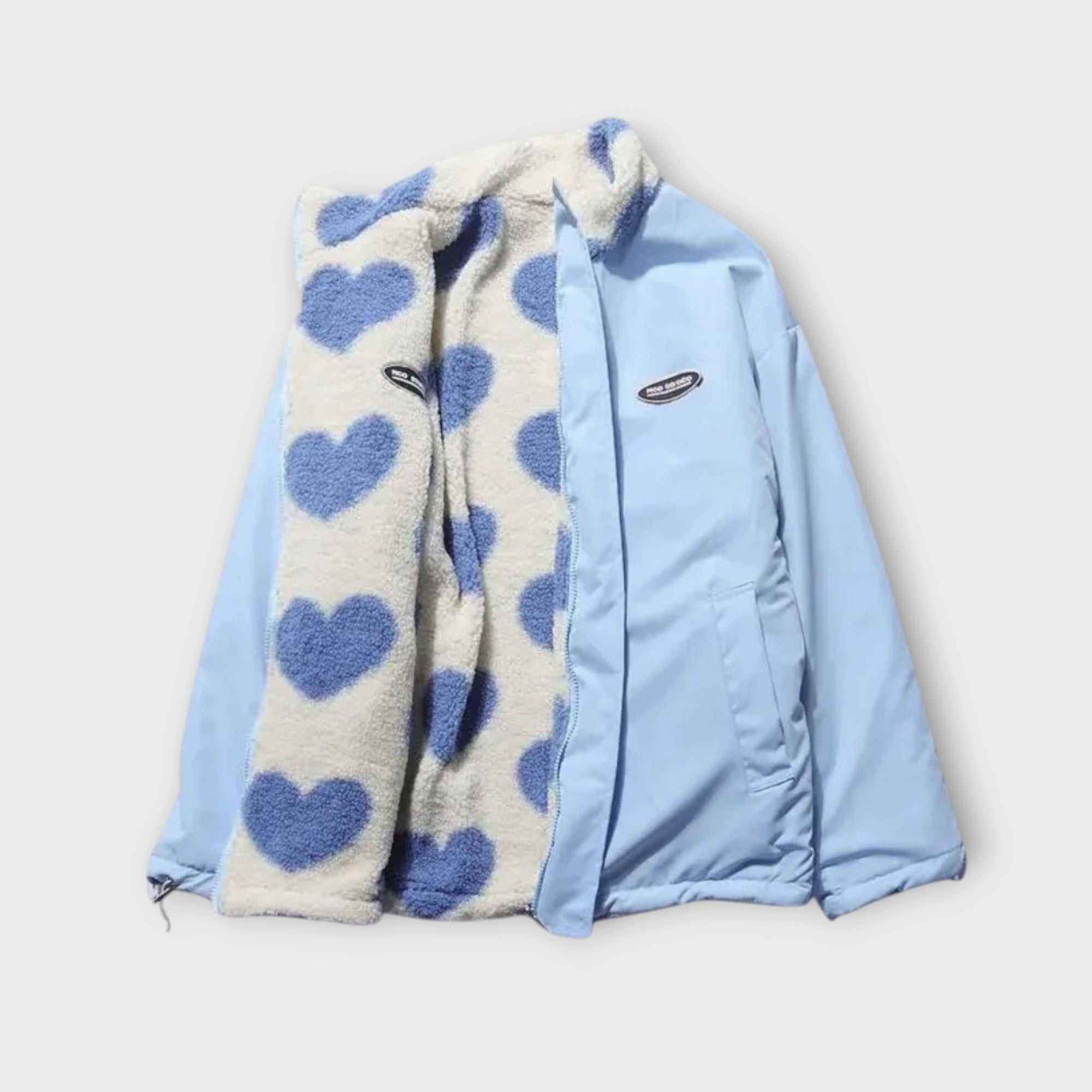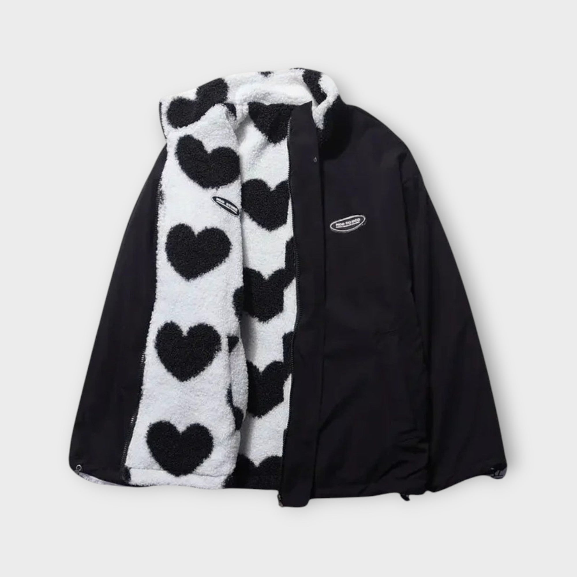 Omkeerbaar ontwerp: kies voor effen buitenzijde of speelse hartjes aan de binnenkant.