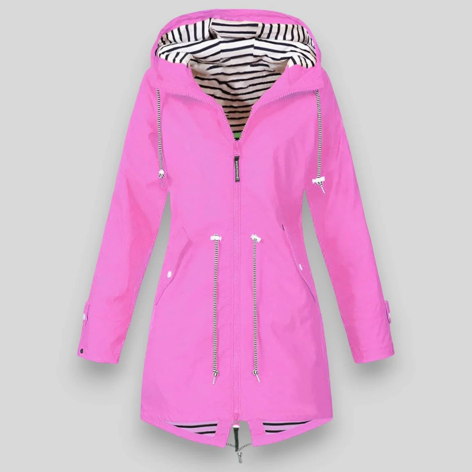 Capuchon, verstelbare taille en manchetten voor een mooie pasvorm
