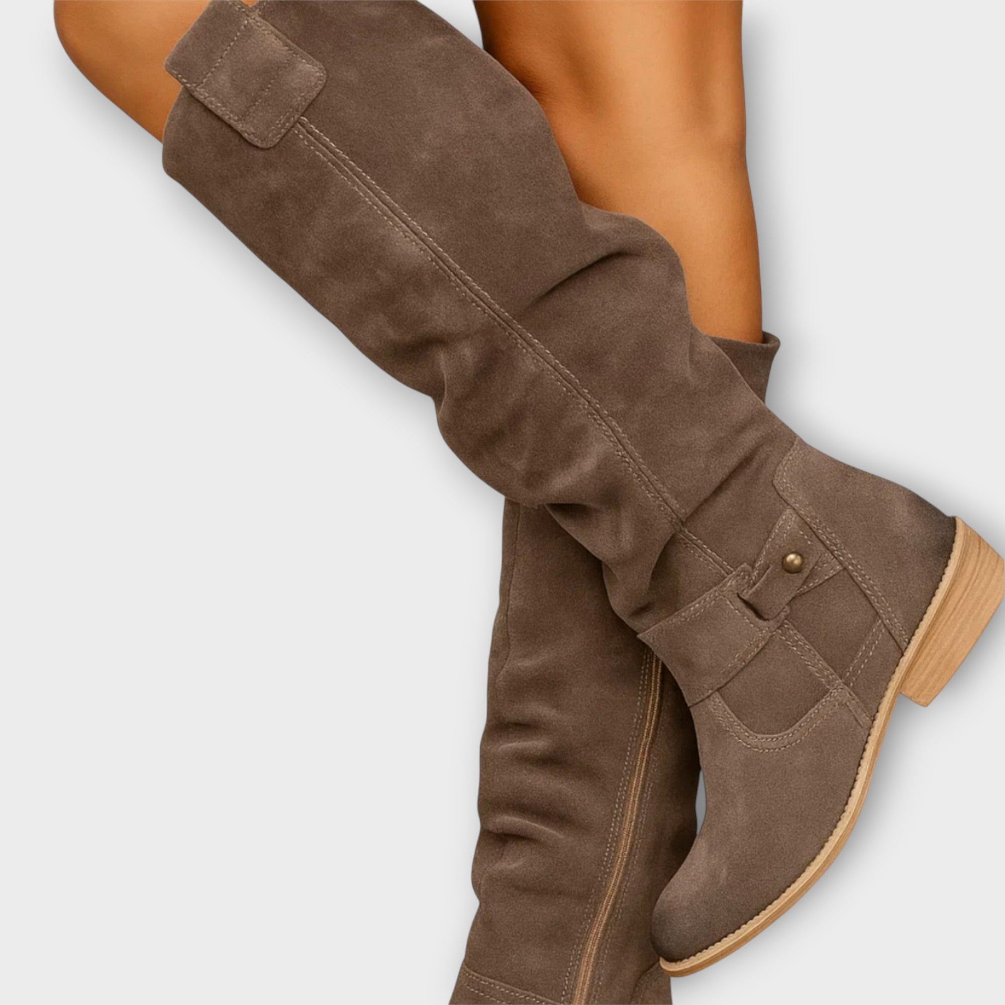 Zachte suède look met een elegante schacht en nette afwerking. Draagbaar bij zowel casual als geklede outfits voor een moeitloos verfijnde uitstraling.